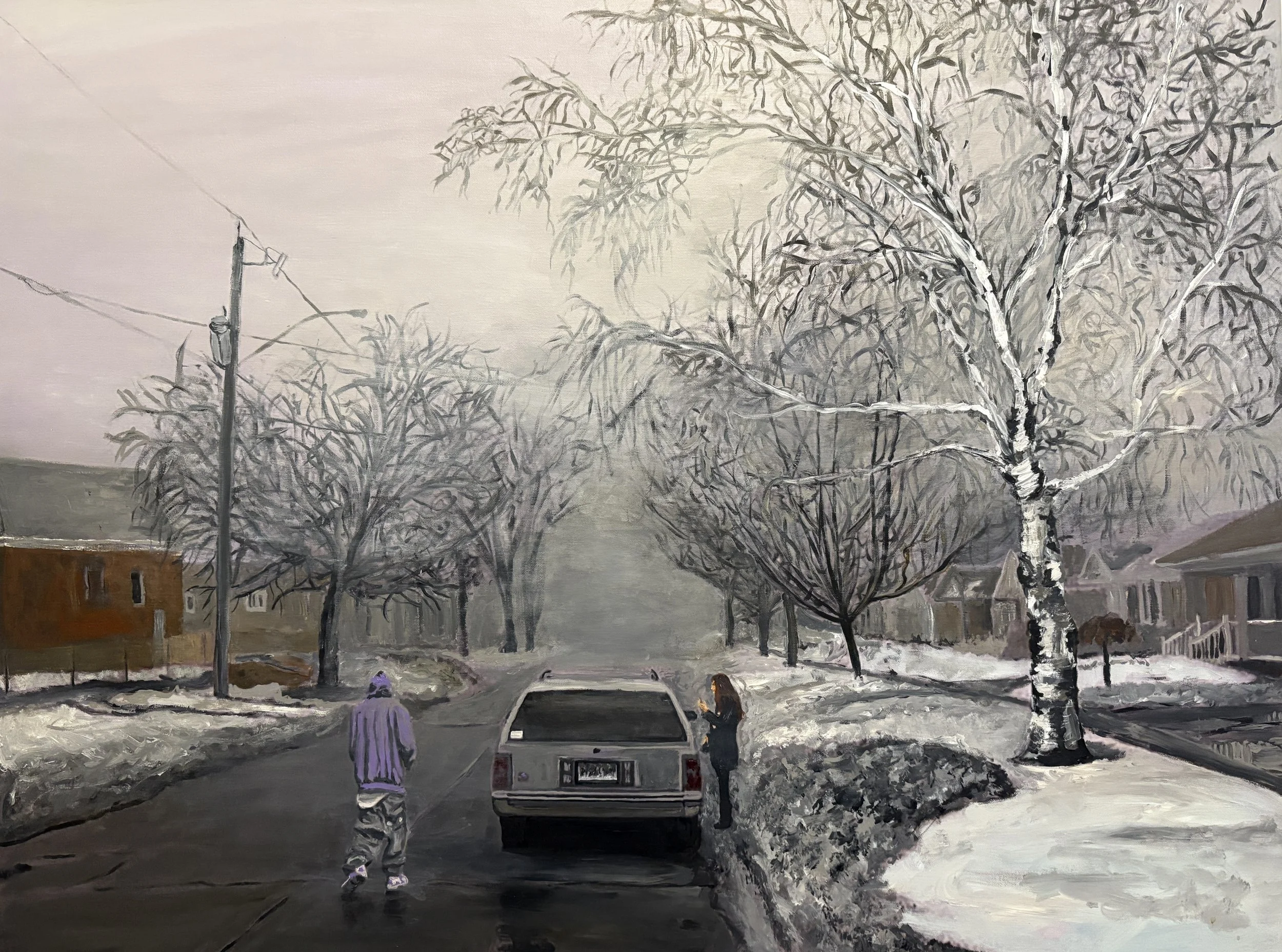 Car Trouble, Acrylic on Canvas, 53x36 inches, 2025